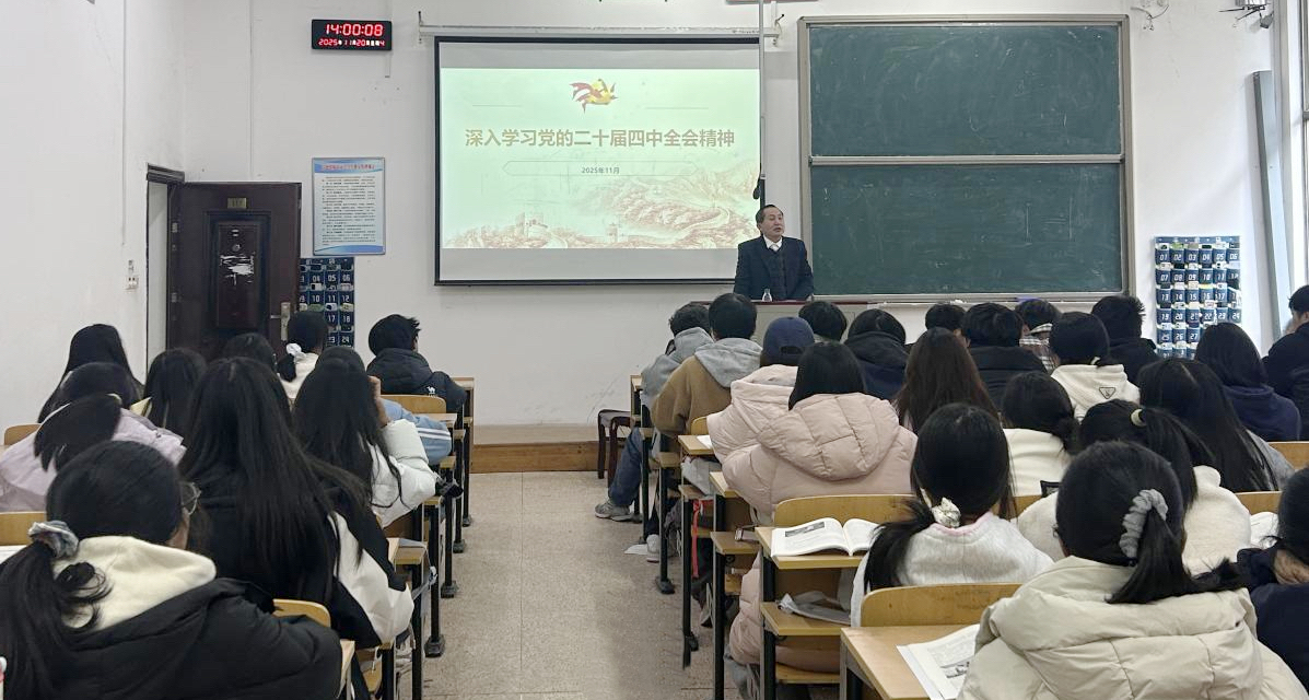 本网讯(管理与经济学院 钟威)为深入学习贯彻党的二十届四中全会精神,引导青年学生坚定理想信念、明确时代责任,11月20日下午,校党委常委、副校长黄勇以“深学细悟党的二十届四中全会精神,争做新时代有为青年”为主题,为2025级英语专业1、2班的同学们讲授了一堂内涵丰富、指导性强的专题思政课。课堂上,黄勇立足高...