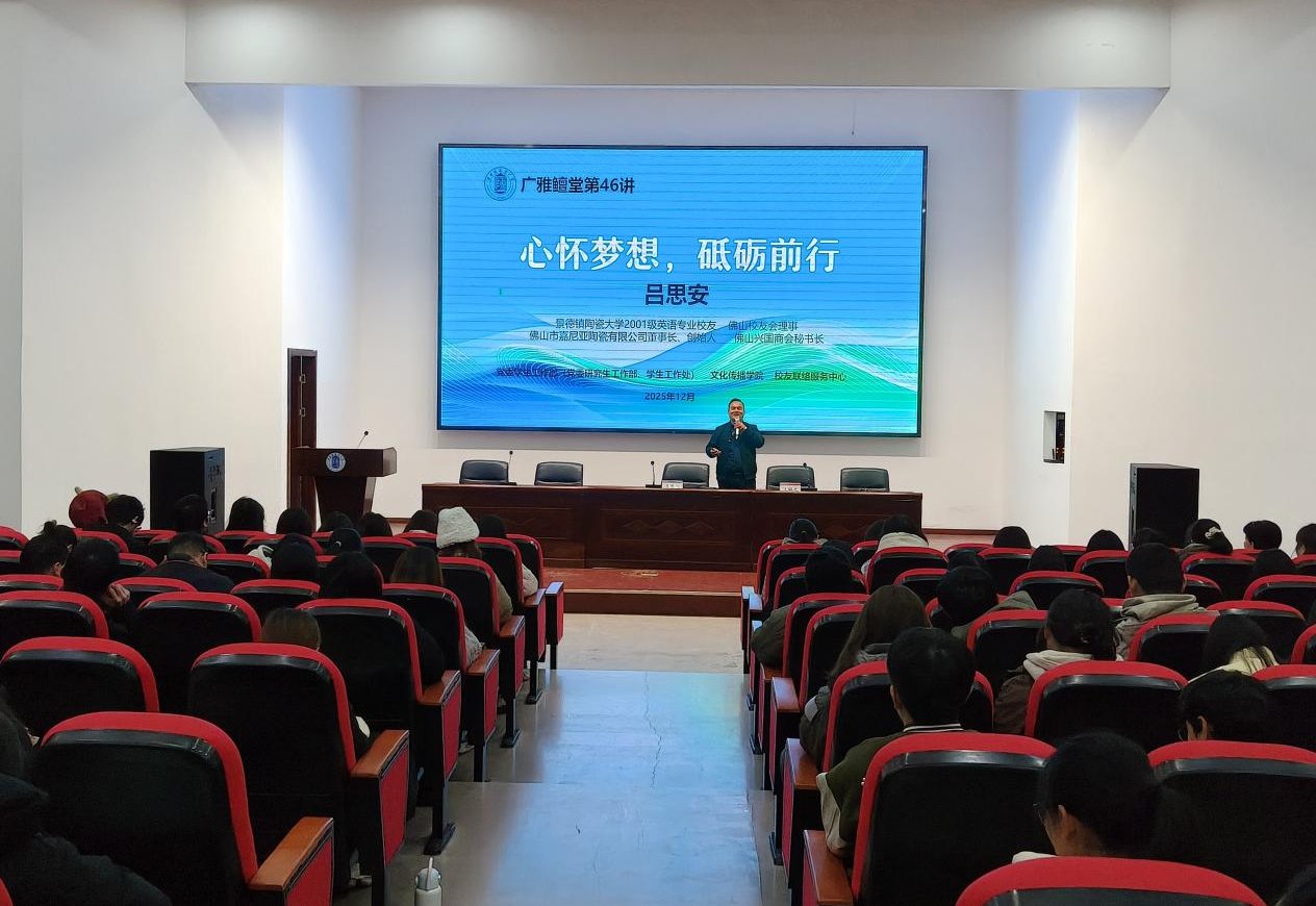 本网讯(文化传播学院 李登鹏)近日,2001级英语专业校友、佛山市嘉尼亚陶瓷有限公司创始人吕思安做客我校广雅鳣堂,在湘湖校区多功能报告厅作题为《心怀梦想,砥砺前行》的专题讲座。此次讲座由党委学生工作部(党委研究生工作部、学生工作处)与校友联络服务中心共同主办,200余名师生代表到场聆听。吕思安以“梦想”...