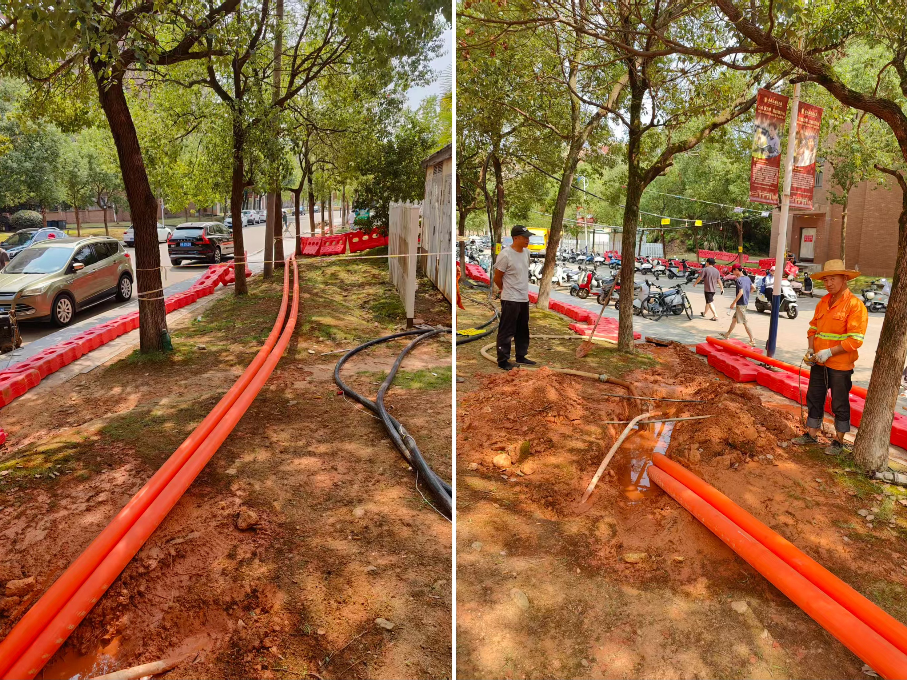 双节坚守保供电---湘湖校区5号箱变高压电缆顶管作业顺利推进