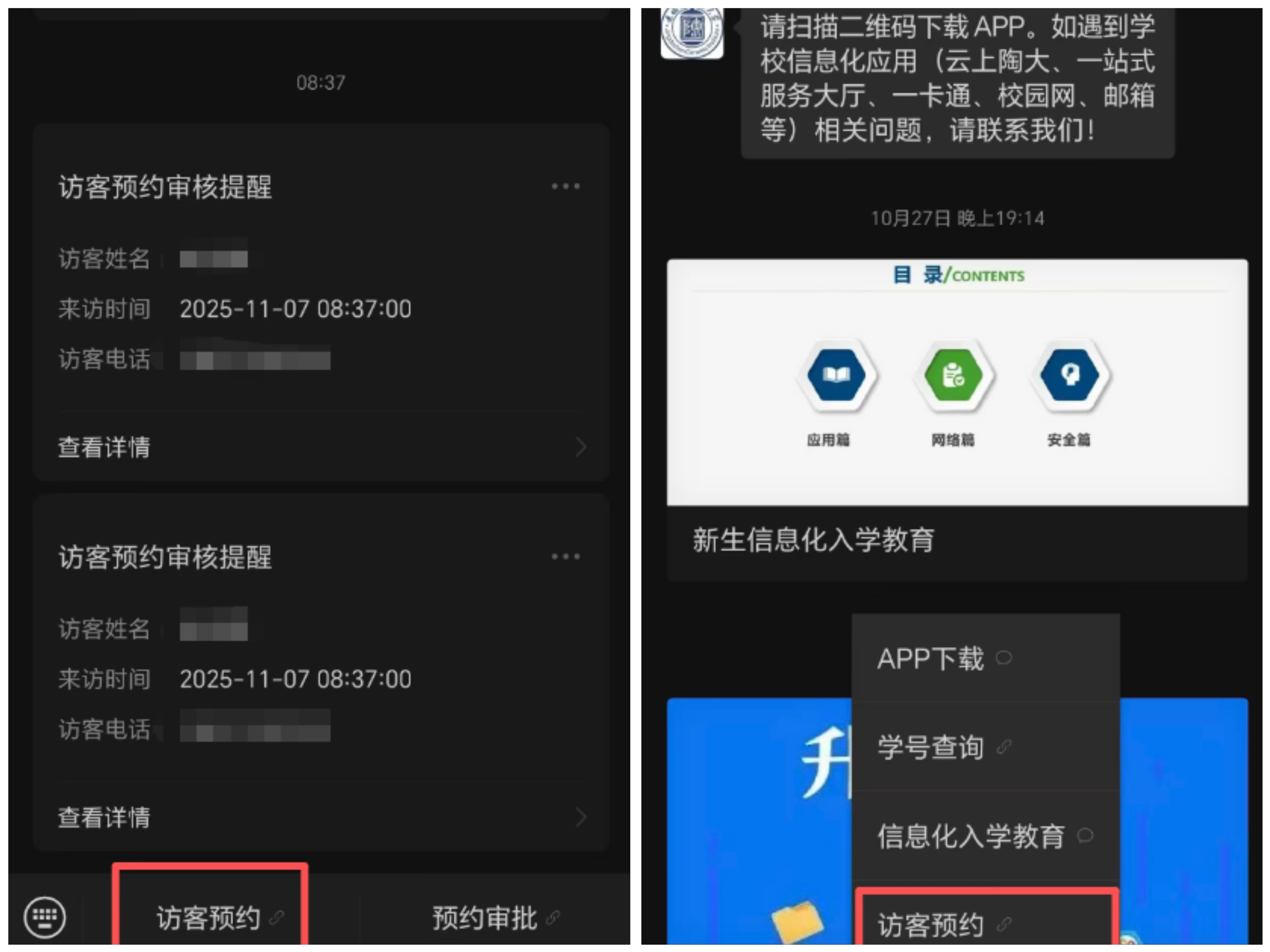 (校内被访人员应对通过网上预约入校的访客承担管理责任)