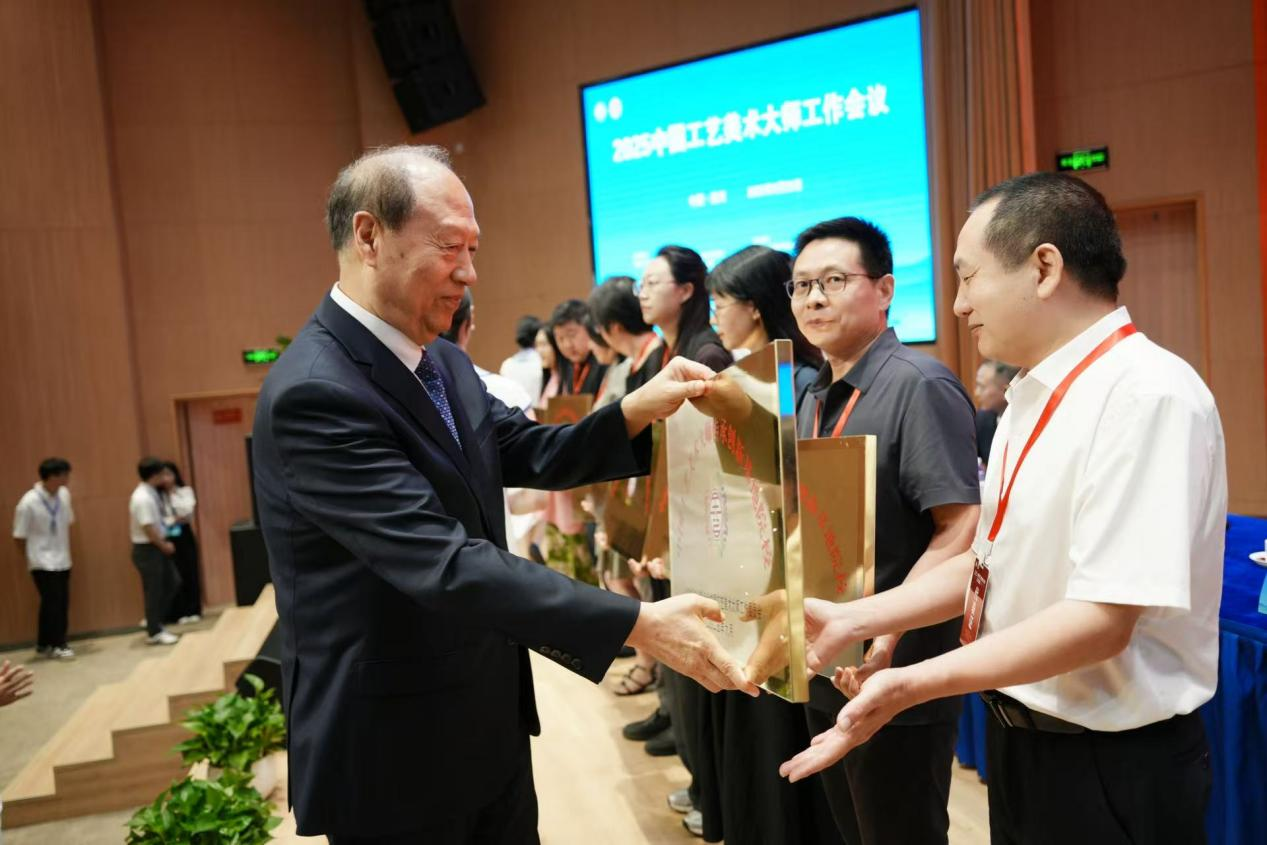 本网讯(汤青卿)为深入贯彻落实《中国传统工艺振兴计划》,加强工艺美术人才培养,推动工艺美术传承创新,促进工艺美术相关院校交流互鉴,由中国轻工业联合会主办,中国工艺美术大师工作委员会、温州市人民政府等单位联合承办的“2025中国工艺美术大师工作会议”,于9月22日在浙江温州肯恩大学举办。中央编办原副主任、中国轻工业联合会党委书记、会长、中国工艺美术大师工作委员会主任张崇和,浙江省温州市人民政府副市长王振勇,国家工业和信息化部消费品工业司二级巡视员邓小丁等出席会议。我校党委常委、副校长黄勇、设计艺术学院副院长郭玉川受邀参加会议。