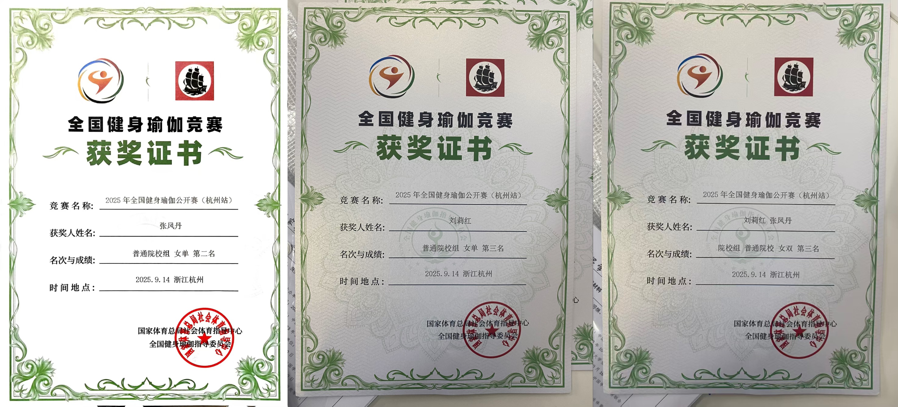 本网讯(体育与军事教学部 李娜)9月12日至14日,由国家体育总局社会体育指导中心主办的2025年全国健身瑜伽公开赛在杭州市萧山区临浦体育馆举行,本次比赛共有来自全国的55支代表队参加,经过激烈角逐,我校代表队最终获得一项第二名和两项第三名的好成绩。