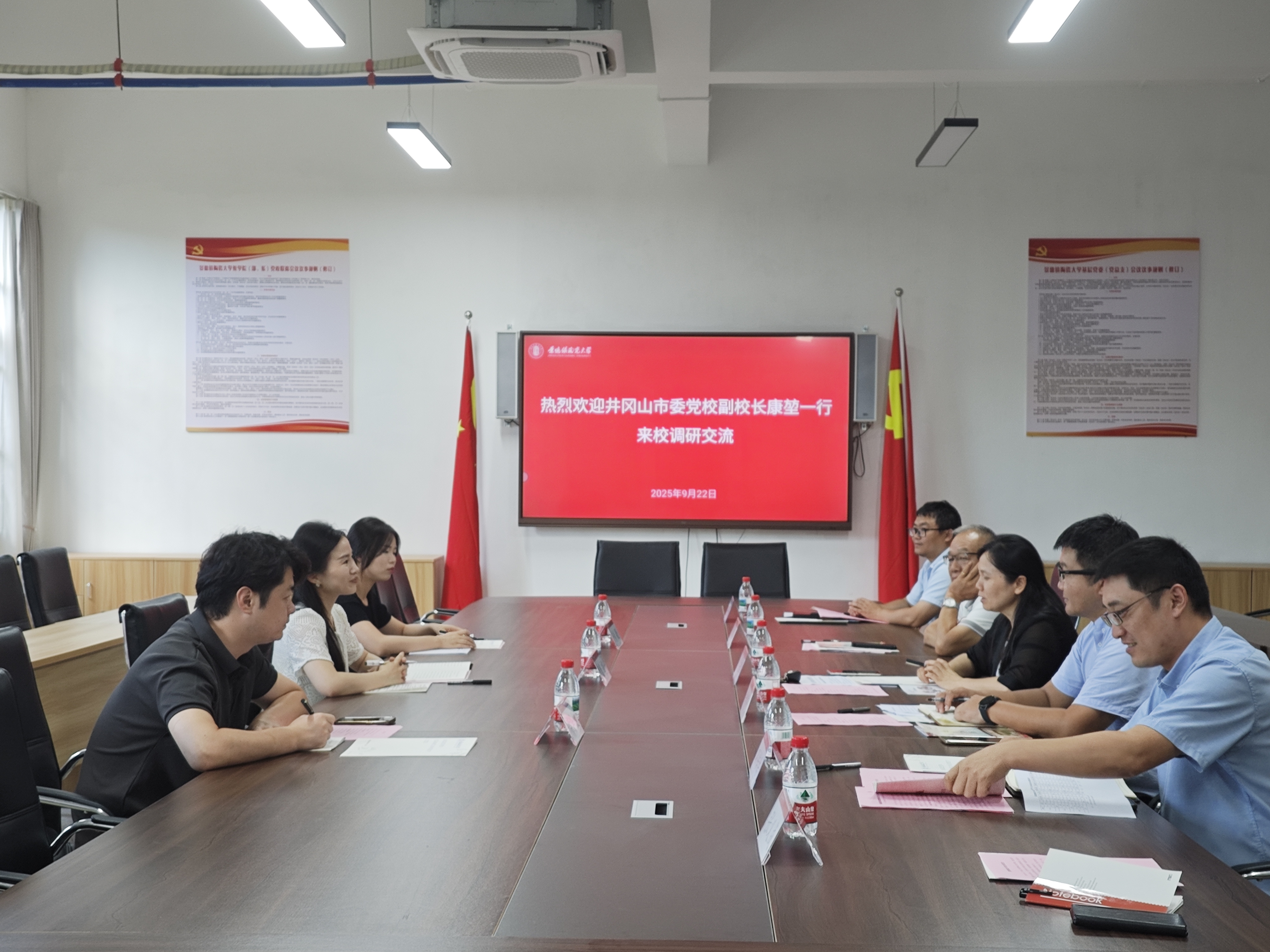 本网讯(创业学院 邹金成 潘星华)9月22日下午,中共井冈山市委党校副校长康堃一行来校调研交流青年就业创业工作,校党委常委、副校长陈云霞热情接待了康堃一行,并主持调研交流座谈会。招生就业处、创业学院等部门有关人员参加座谈会。