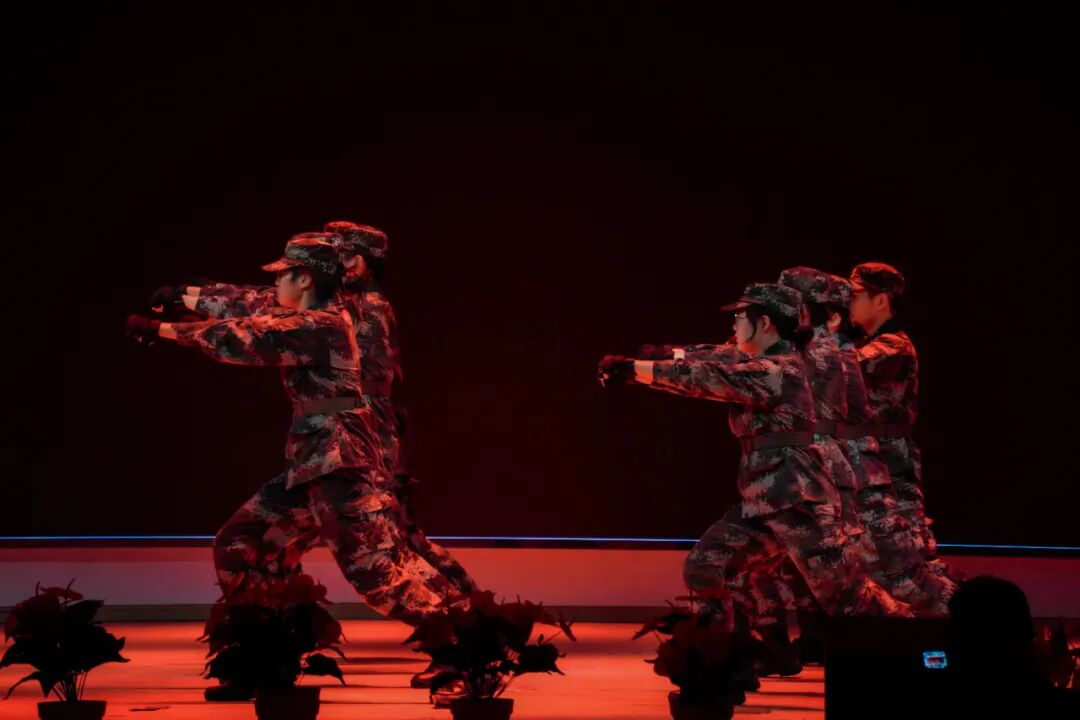 步伐铿锵,动作有力,大学生护校队和国旗护卫队以军体拳、刺杀操展现《军魂》。清晨的升旗、夜幕下的训练、岗位上的坚守,他们始终用青春守护国旗荣耀,用汗水守护和谐校园,以实际行动彰显爱国担当。
