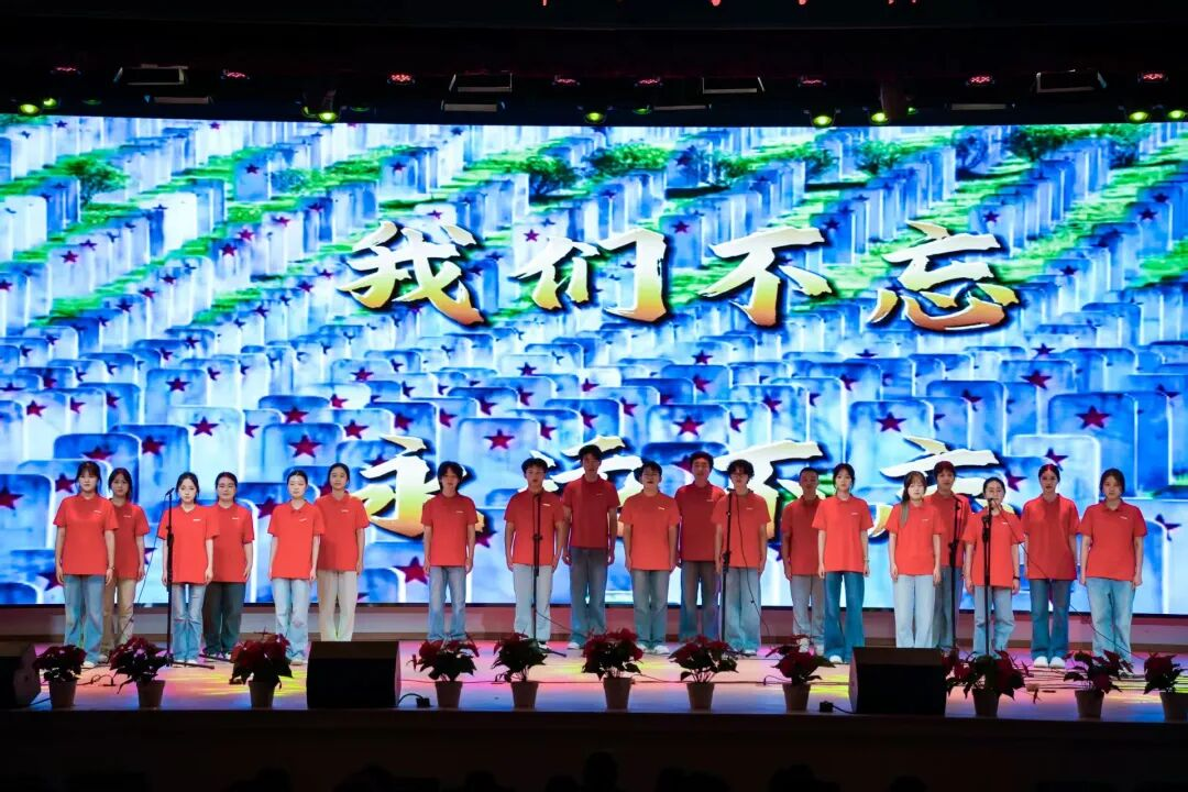 “80多年前,东方主战场上,中国以巨大的民族牺牲,抗击了日本军国主义主要兵力,有力支援了欧洲和太平洋战场上的抵抗力量。”正值中国人民抗日战争暨世界反法西斯战争胜利80周年,考古文博学院2023级文物与博物馆学专业罗天、机械电子工程学院2023级机械设计制造及其自动化专业王稼丰、设计艺术学院2023级环境设计专业夏振威以《我们在纪念什么》为题回望中国人民在抗日战场上做出的巨大牺牲和伟大贡献,引导广大青年铭记历史、奋发图强。学生合唱团展示合唱歌曲《勿忘》。