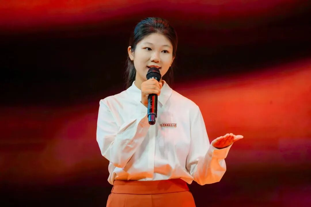 “英雄是民族最闪亮的坐标。一个有希望的民族不能没有英雄,一个有前途的国家不能没有先锋。” 材料科学与工程专业2023级无机非金属材料工程专业李茹花以《致敬功勋模范 强国复兴有我》为题分享了学生社团红砚社追寻英模足迹、讲述英模事迹、传承英模精神的生动实践,去年,红砚社的同学们历时6个月创作了55位功勋人物的头像印象、篆刻小楷印谱,组建“英雄模范人物先进事迹”宣讲团,让英模精神在一代代青年中赓续传承。