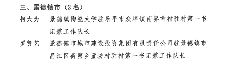 自2023年6月,柯大为同志担任景德镇陶瓷大学驻乐平市众埠镇南界首村第一书记兼工作队长以来,他带领村干部深入贯彻落实习近平总书记关于“三农”工作的重要论述和考察江西重要讲话精神,坚持深入调研摸实情、科学规划定方向、因地制宜谋发展,以学习运用“千万工程”经验为引领,充分发挥学校人才、技术与学科等优势,助力南界首村走出一条以“红、绿、橙、金、蓝”为内涵的“五彩振兴”可持续发展之路。相关成效获江西卫视、《江西手机报》《乐平之窗》等媒体多次报道,南界首村成功入选江西省乡村振兴示范村创建名单,景德镇陶瓷大学获2024年省级定点帮扶考核“好”等次,柯大为同志连续两年获省级年度考核“优秀”。