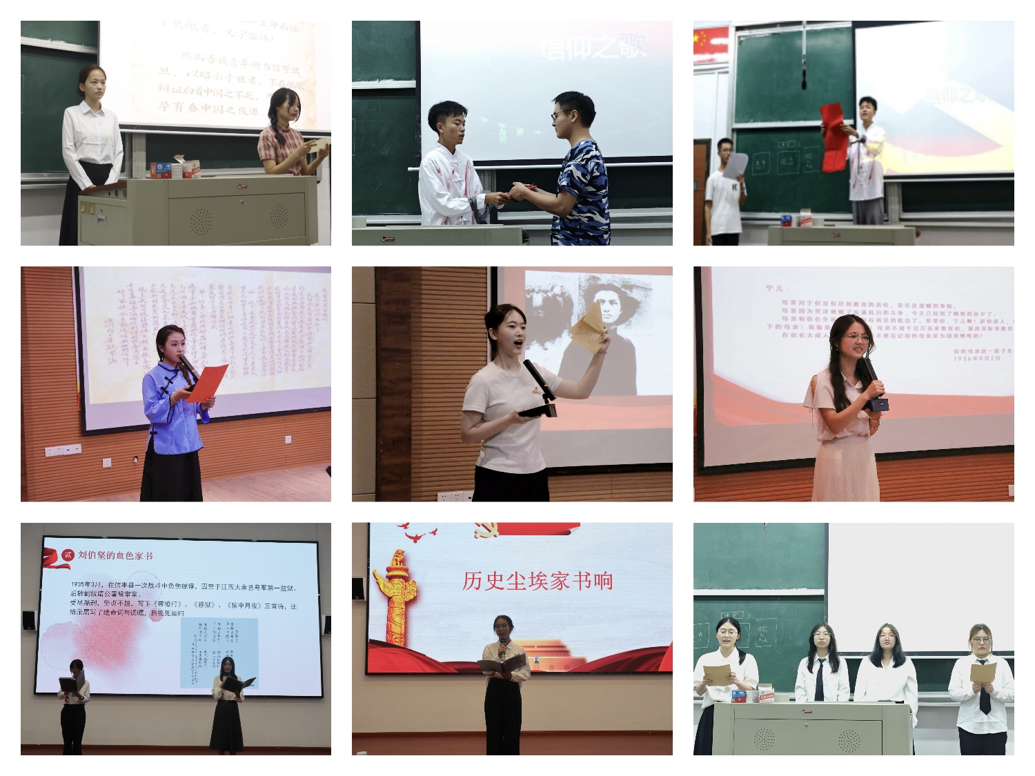 各学院(部、系)深入班级、团支部、新生军训场等地开展形式多样的宣讲活动,同学们结合党史讲述赵一曼、夏明翰、史砚芬等英烈事迹,深情诵读红色家书。