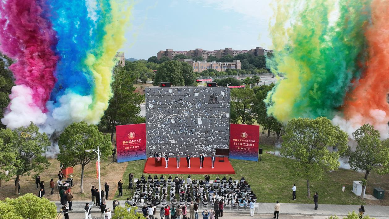 吕品昌在致辞中谈到,作品《115立方米》通过收集校内各历史时期、涵盖多学科特色的老物件,以混凝土分层浇筑的独特工艺,将115年学校办学辉煌与历史记忆实体化,以简朴而深刻的方式为校庆献礼,寓意陶大百余年积淀的丰碑。陶瓷大学是中国陶瓷工业由传统手工业向现代工业转型、是中国高等教育由传统家族式传承向现代化教育转型的见证者、实践者和贡献者。学校始终坚守弘扬中华陶瓷文化、振兴中国陶瓷工业的初心使命,《115立方米》不仅是一座铭记辉煌过往的历史丰碑,更是一座警示碑,希望全体师生不忘初心、坚守陶瓷教育的根与魂,立足自身特色、服务国家陶瓷文化传承创新,在新时代征程中行稳致远。