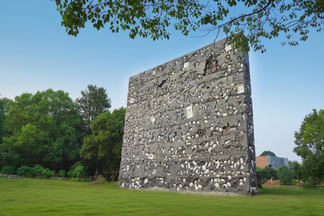 陶大教育百年不变的底色是工程技术与设计美术学科相长,以培养出色的艺术家,优秀的陶瓷工程学者,陶瓷装备设计师为教育己任。校园雕塑《115立方米》在特殊的时间节点落成,将百年时间转化成115立方米的空间,凝固陶大百年办学的教学成果符号汇聚成一面文化景观墙,对百年校史的回顾与致敬。《115立方米》中的白瓷与青花瓷均产自景德镇,收集大量的瑕疵或废弃产品,白瓷与青花瓷是景德镇产瓷器区的特色,因此,在文化景观墙的占比较多。新厂的老校区见证了陶大早期的辉煌历史,整理出老校区的废弃设备。“物”的存在具有时间性,过去的物会带有当时的集体记忆与制造意义。《115立方米》文化景观墙融合了老校区窑炉所烧制的耐高温餐饮器皿以及几件被废弃的大型的陶瓷生产机械设备。在科技赋能产业时代,这些物品已被新型产品所淘汰,将废弃的旧物转化成公共艺术现成品,以物为媒介解读时代记忆与文化逻辑。比如大型陶瓷机械设备中的隔膜泵,生产于1978年,见证了当时景德镇的制瓷工业水平,同时也标志着学校在机械设备的研发也有一定的成就。陶瓷行业的辐射力较强,陶大的师资团队在陶瓷各个领域苦心孤诣地研究,因此,文化景观墙在墙面置放了一批卫生陶瓷,以表明学校在陶瓷各个行业的研发的科研精神,学校有国家级的国家日用及建筑陶瓷工程技术研发中心,将科研成果转化生产力,以服务全国陶瓷行业。《115立方米》中的每个物件背后是陶大学子的钻研态度,更是景德镇的匠心体现。以大型校园雕塑作品铭记景德镇陶瓷大学的办学初衷与使命,弘扬中国陶瓷文化,振兴中国陶瓷工业,坚持走特色办学之路,培养人才面向社会,面向国家,面向国际。