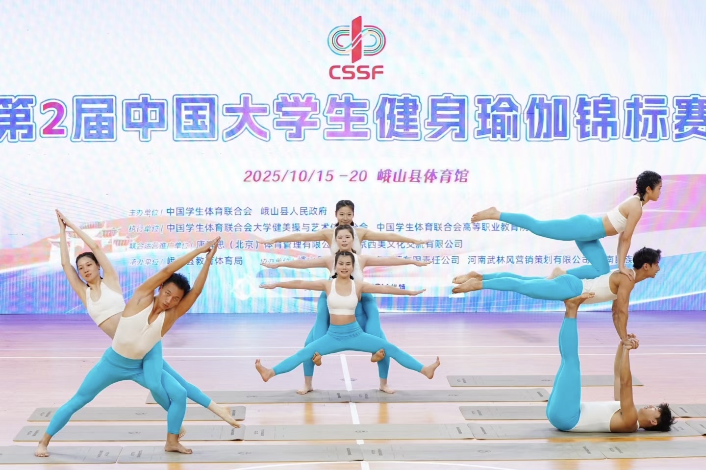 本次大赛由中国学生体育联合会与峨山县人民政府联合主办,是全国高校间级别最高、规模最大的健身瑜伽类赛事之一。来自全国52所高校的576名运动员齐聚一堂,同台竞技,共同演绎了一场“力与美、柔与刚”交织的青春盛会。
