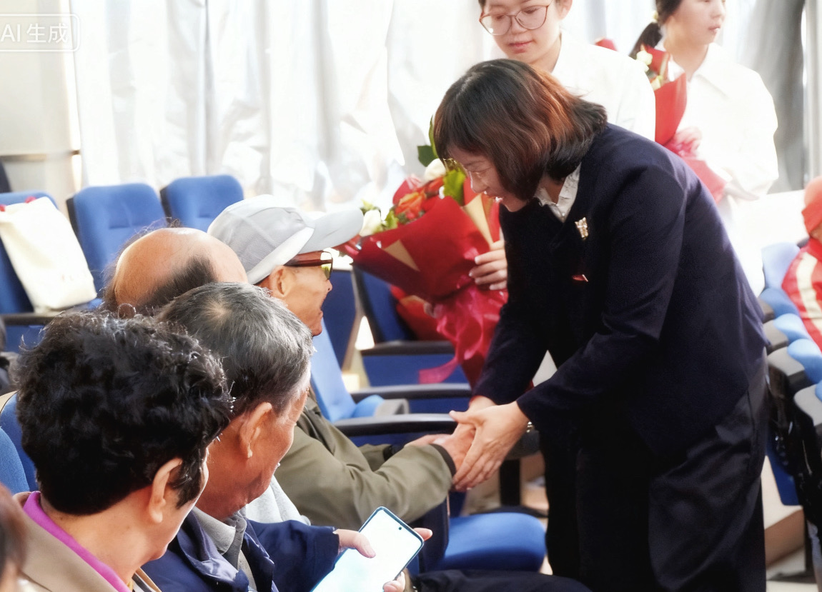 会上,王海波宣读了学校2025年寿星名单,今年我校共有56位寿星。校领导为寿星献花并送上真挚祝福。