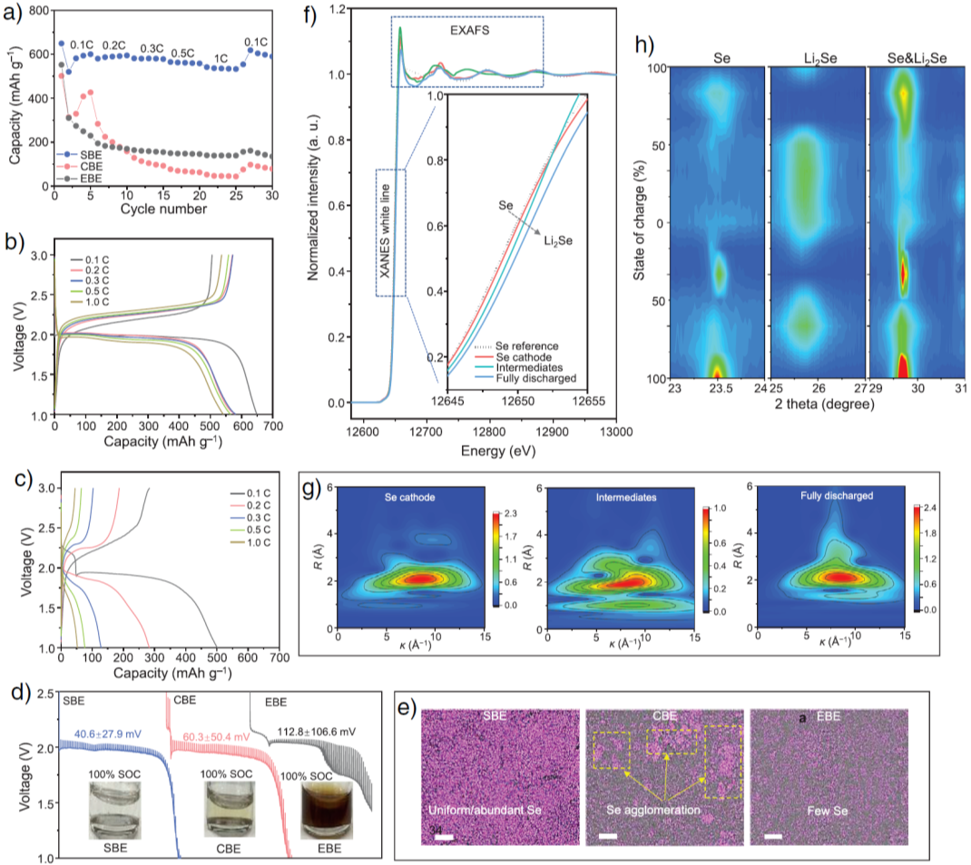 图3. EXAFS与XANES揭示Se↔Li2Se的准固态转化机制。