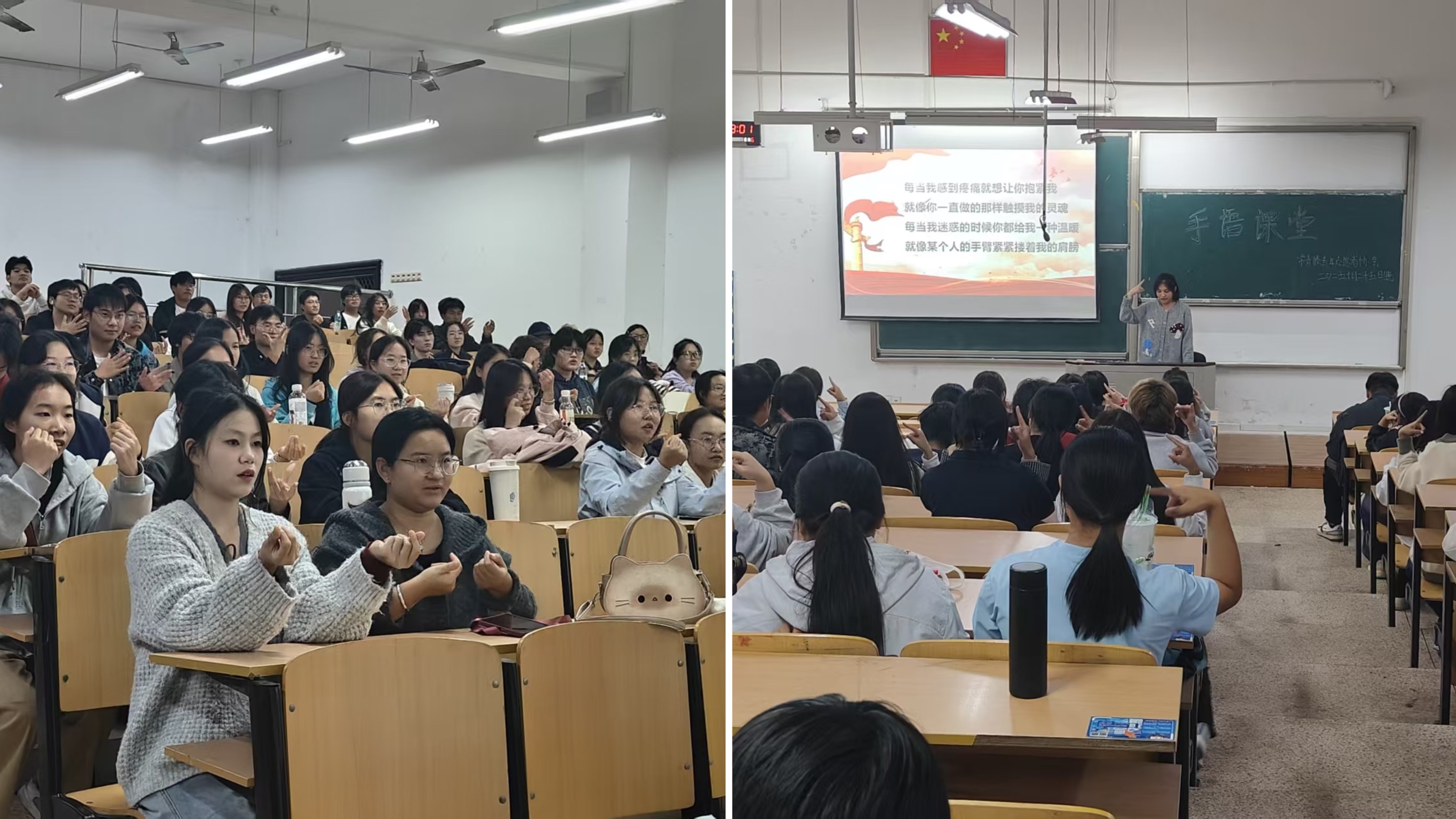 舞动指尖,传心之音。10月25日,“舞动指尖,传心之音”公益手语课堂温情开启。本次公益课堂面向所有热爱公益、愿意搭建沟通桥梁的陶大学子,无论有无手语基础,只要心怀善意与耐心,都能在这里找到属于自己的成长坐标。课堂上,参与者们以热忱赴约,在一抬一落的手势里感悟沟通的温度,在一伸一收的练习中学习尊重与包容。从简单的问候手势到饱含深情的完整表达,每一次指尖的舞动,都是对无声世界的温柔回应;每一次认真的学习,都是为公益事业添砖加瓦。