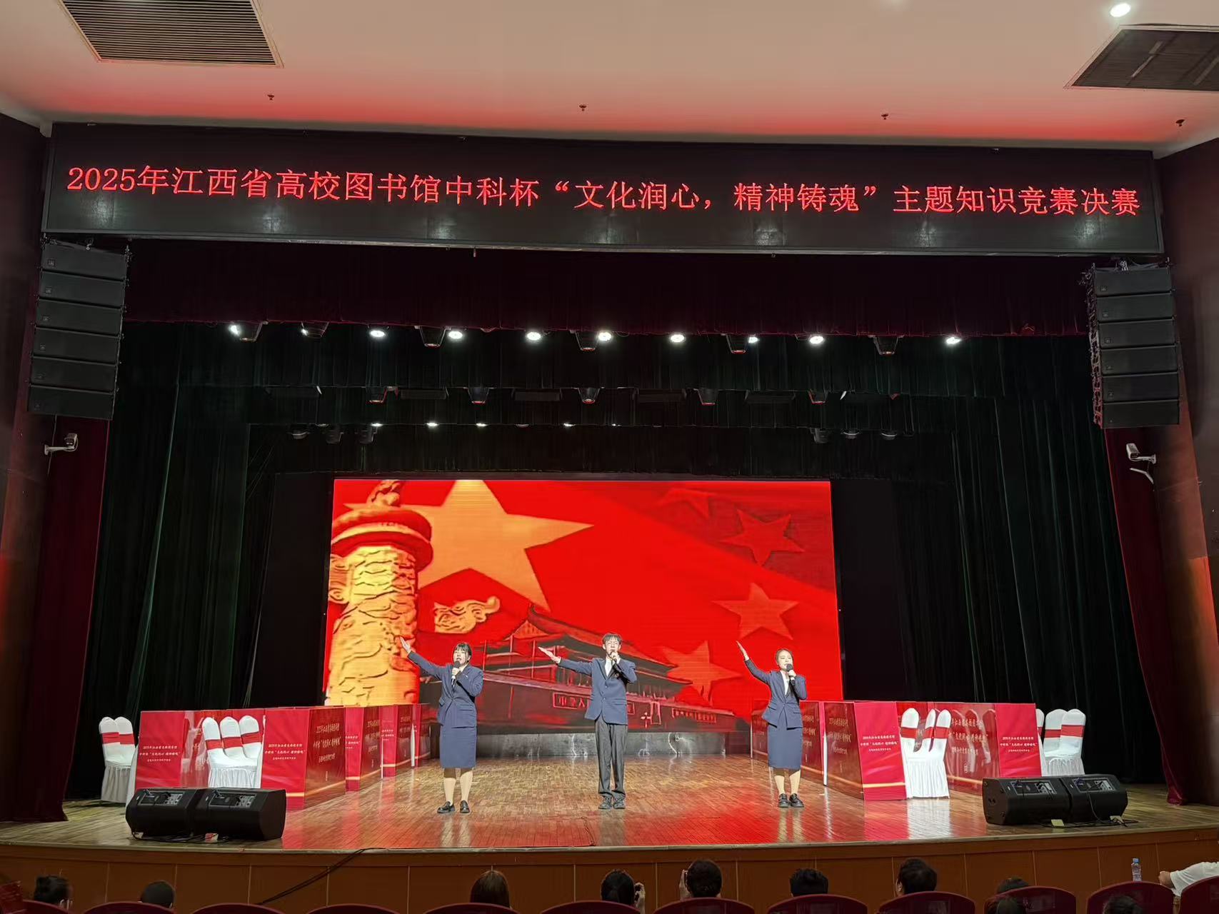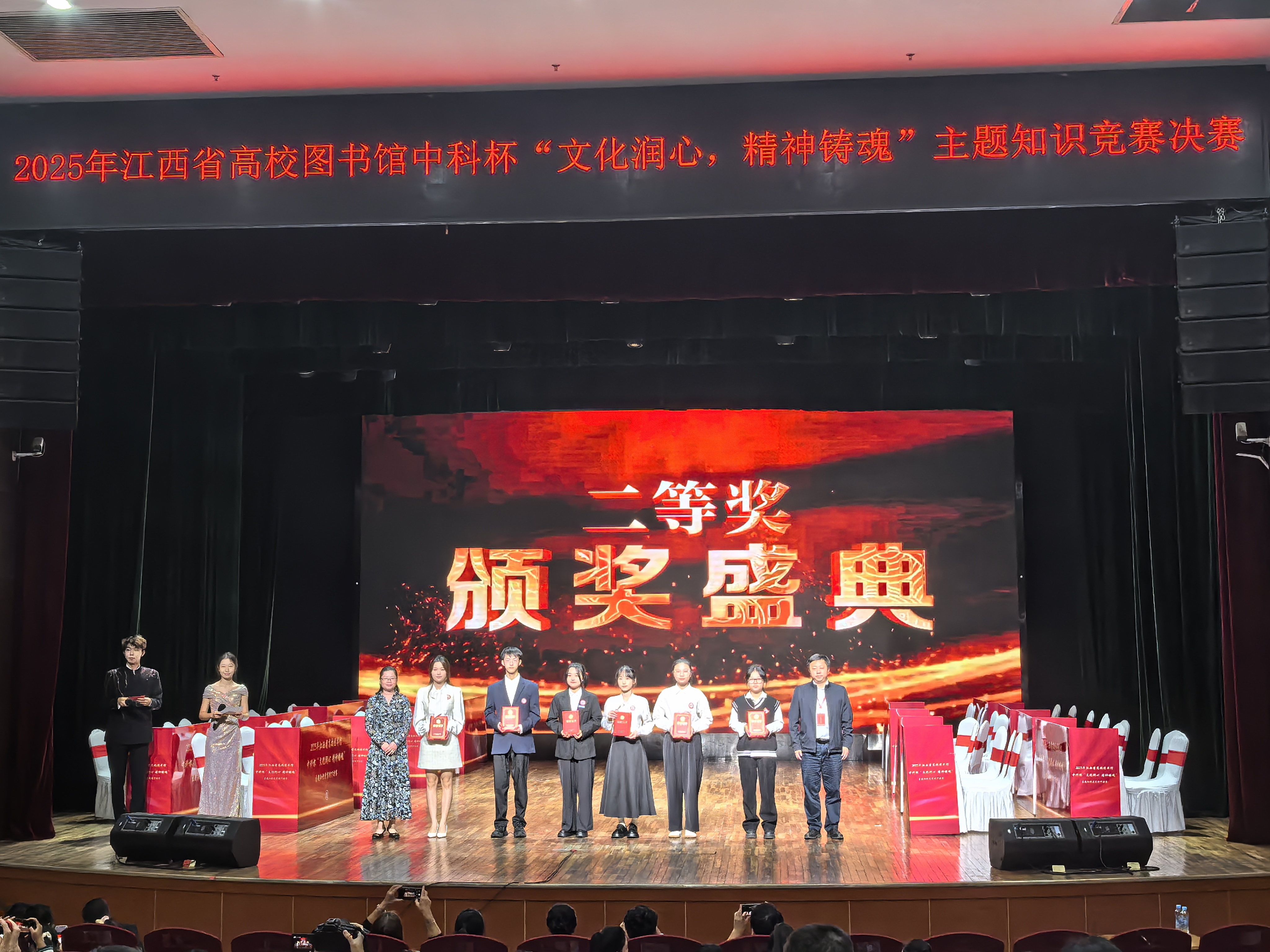 本网讯(图书馆 江慧慧)11月8日下午,江西省高校图书馆·中科杯“文化润心 精神铸魂”主题知识竞赛决赛在南昌大学圆满落幕。由校图书馆选拔、指导的参赛代表队凭借扎实的知识储备和优异的舞台表现,荣获大赛二等奖,充分展现了我校学子深厚的文化素养与昂扬的精神风貌。