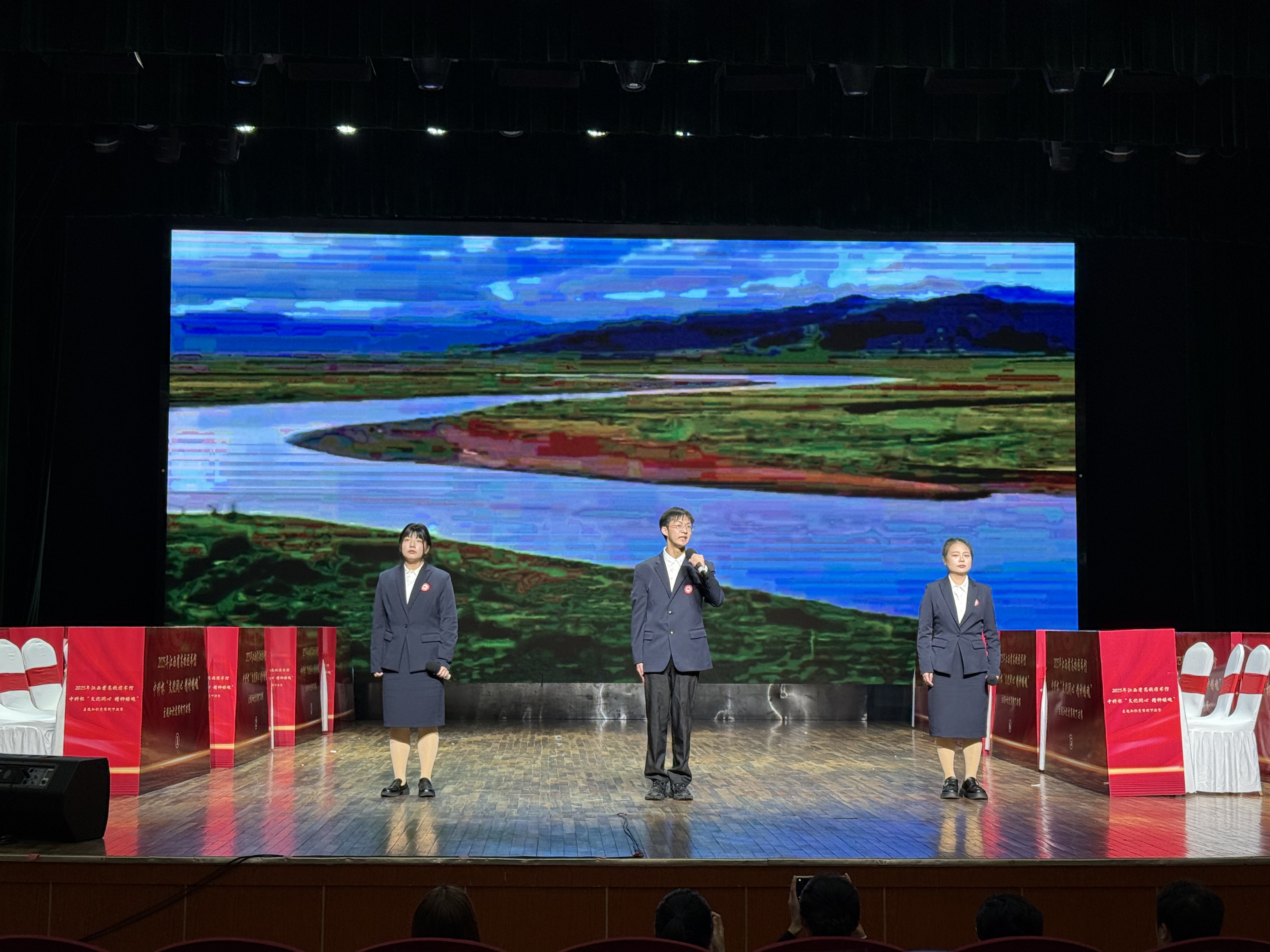 作为赛事参与单位,图书馆高度重视,联合校团委、党委学生工作部(党委研究生工作部、学生工作处)积极组织学生参赛。经过初赛选拔,最终遴选出23级图情专业研究生韩明静、23级能源专业本科生林旭明和24级绘画专业本科生李欣乐组成我校决赛代表队。备赛期间,同学们系统梳理了党史、新中国史、改革开放史、社会主义发展史及中华优秀传统文化等海量知识点,并在指导老师的悉心指导下反复练习朗诵《百年交响》。