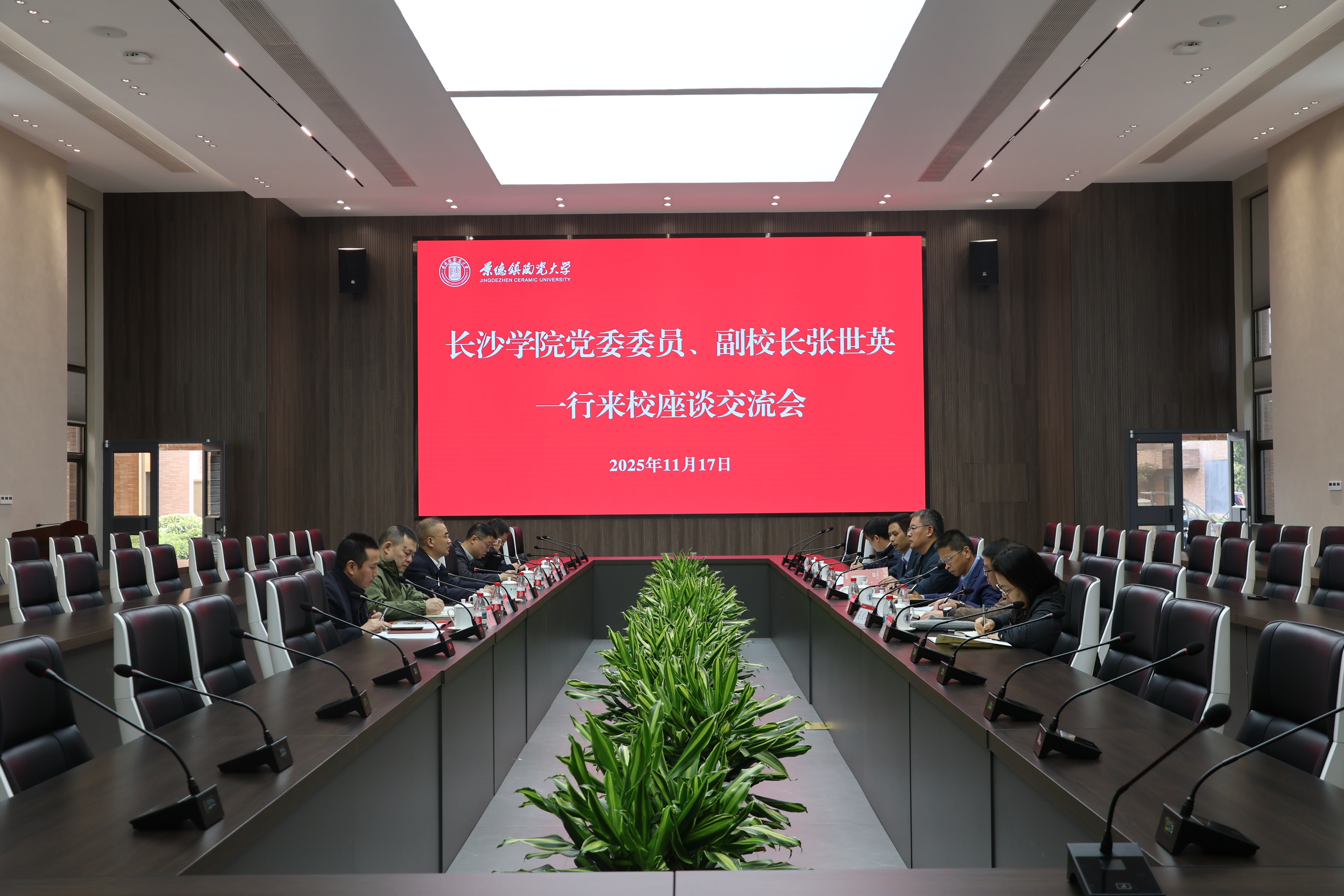 张世英谈到,陶瓷大学办学历史悠久,特色鲜明,长期以来长沙学院与陶瓷大学建立着密切友好的合作关系,学校的发展也得到了陶瓷大学的关心和支持。近年来,长沙学院主动融入区域经济社会发展,构建起以工程应用类学科专业群为主体,文化创意类与现代服务类学科专业群为两翼,多学科协调发展的学科专业体系,在队伍建设、科学研究、文化科技融合等方面取得了良好成效。本次调研旨在学习陶瓷大学在审核评估、教育教学等方面的有益经验,希望双方进一步加强沟通交流,互帮互助,助推双方高质量发展。