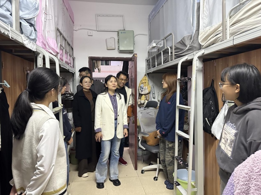 在检查过程中,陈云霞与同学们亲切交流,了解同学们的学习生活状况和实际需求,听取学生对宿舍安全教育管理、物业服务等方面的意见建议,细致查看学生宿舍的用电环境,向同学们普及安全用电、防火防盗、应急避险等知识,引导同学们自觉遵守学校学生宿舍管理规定,增强安全防范意识。
