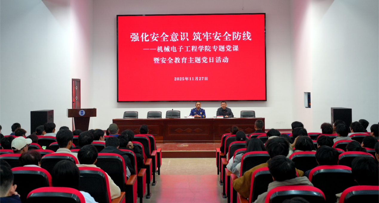 本网讯(机械电子工程学院 易迎欣)11月27日,机械电子工程学院党委组织开展了“强化安全意识 筑牢安全防线”主题党日活动。校党委常委、副校长陈云霞出席主题党日活动,浮梁县消防救援大队大队长陈坚受邀讲授消防安全专题党课,学院师生党员参加主题党日活动,保卫处有关负责同志、部分党外教学科研管理实验岗位教职工和学生代表受邀参加活动。