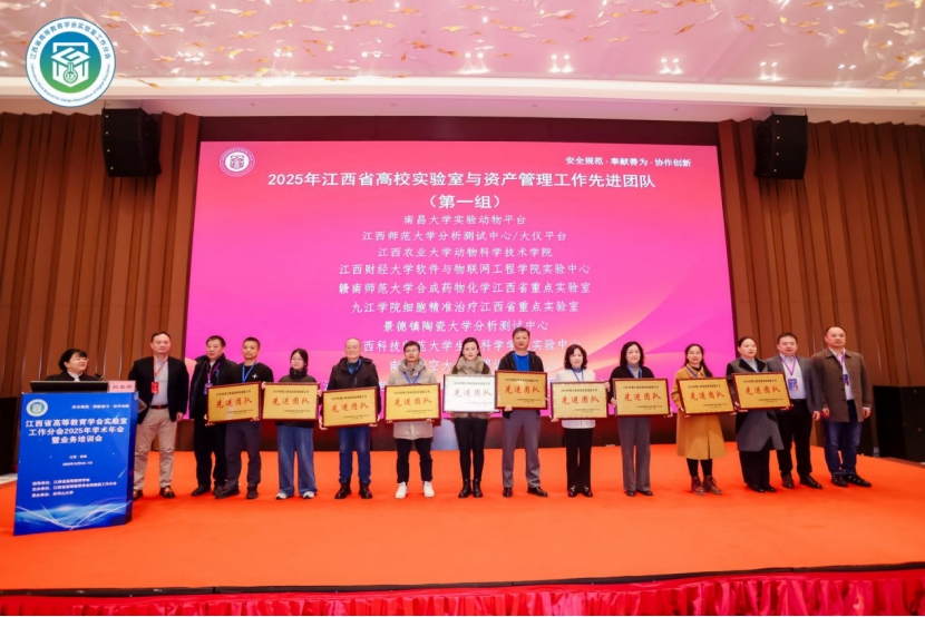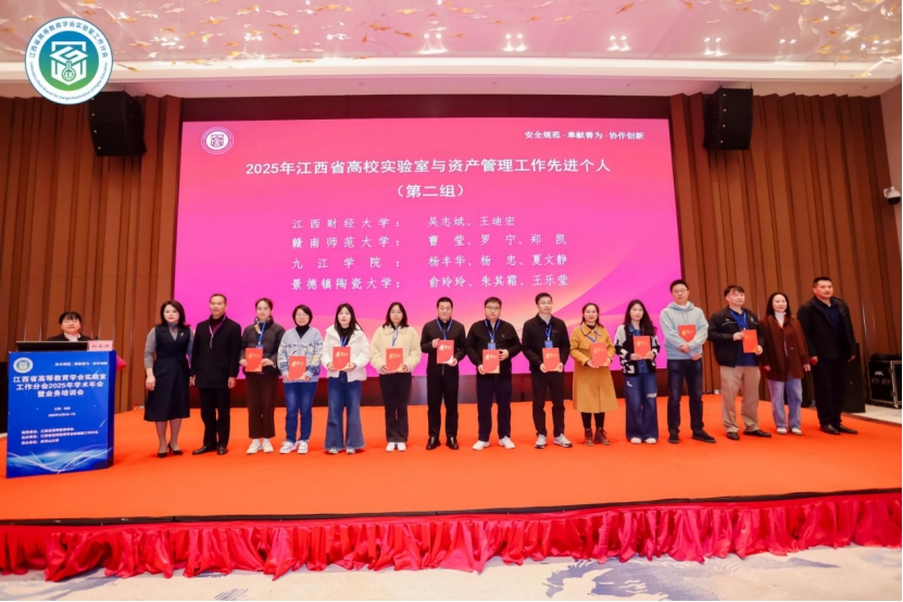 本网讯(资产与实验室管理处 孙续畅)近日,江西省高等教育学会实验室工作分会2025年学术年会暨业务培训会于吉安召开。会议对2025年度在全省高校实验室与资产管理工作中表现突出的先进单位、先进团队和先进个人进行了表彰。我校荣获“2025年江西省高校实验室与资产管理工作先进单位”称号,分析测试中心被评为“先进团队”,资产与实验室管理处教师俞玲玲、材料科学与工程学院教师朱其霜、江西省燃料电池材料与器件重点实验室教师王乐莹被授予“先进个人”荣誉,资产与实验室管理处原处长刘建成荣获“突出贡献奖”,获奖数较上一年增加两个奖项。