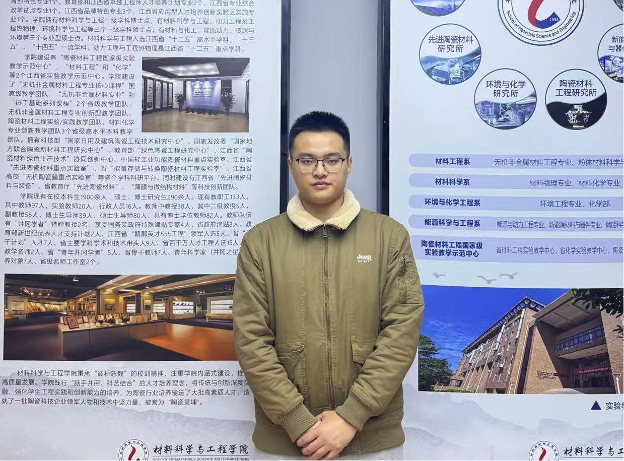 胡江南,男,材料科学与工程学院2025级博士研究生,导师为江向平教授和黄枭坤副教授,主要从事介电储能陶瓷研究,自硕士学习以来已在国内外权威学术期刊发表论文7篇。