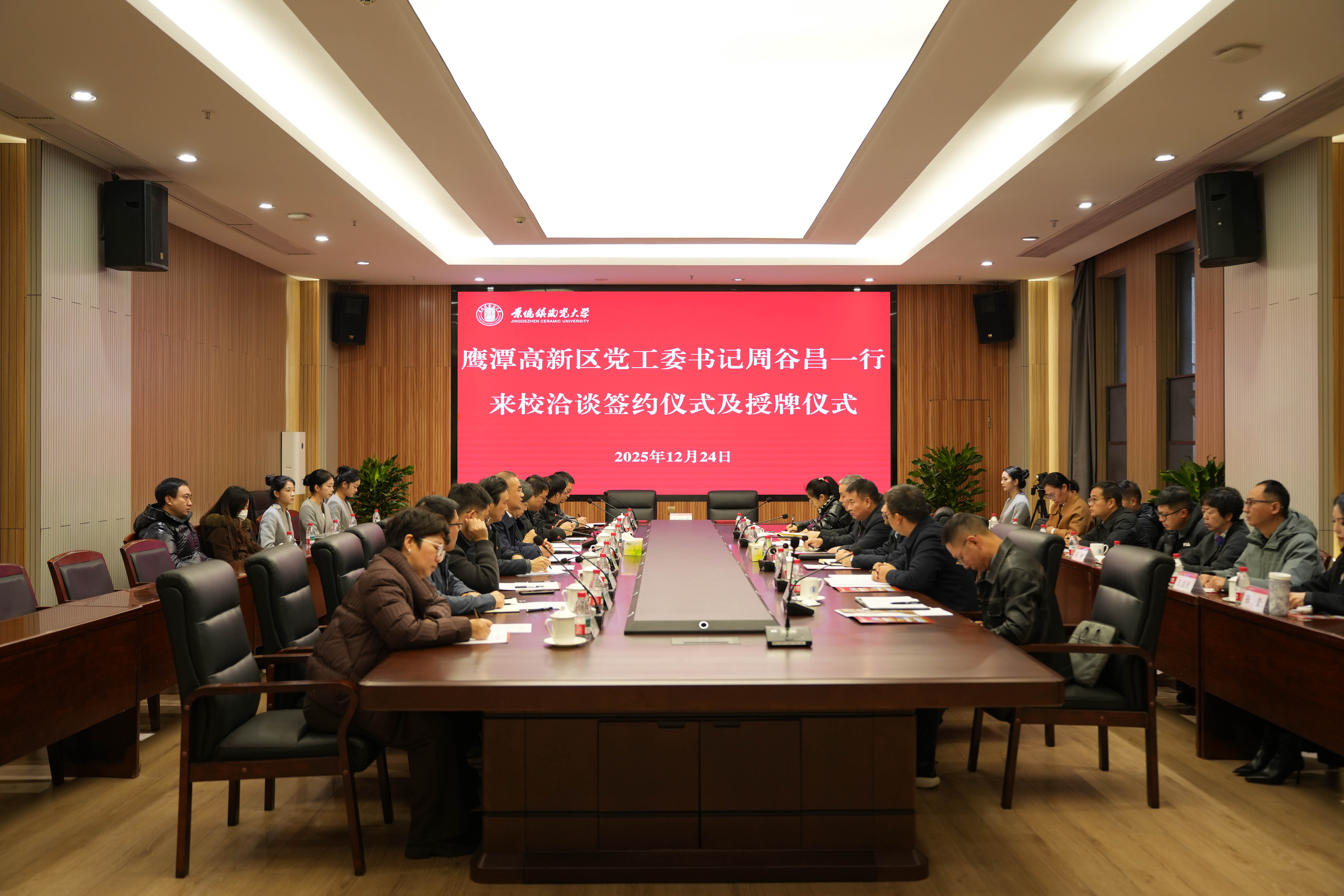 我校党委(校长)办公室、发展规划处、科学技术处、招生就业处、机械电子工程学院、信息工程学院等相关负责人以及鹰潭高新区管委会、鹰潭高新区党政办公室、鹰潭高新区科技分局、鹰潭高新区人才服务中心、鹰潭高新区社会保险事业中心、江西江南新材料科技股份有限公司、三川智慧科技股份有限公司研发部、江西水晶光电有限公司、江西鑫铂瑞科技股份有限公司、江西康成特导新材料股份有限公司、鹰潭科速达电子塑胶有限公司等企事业单位相关负责人参加签约仪式。