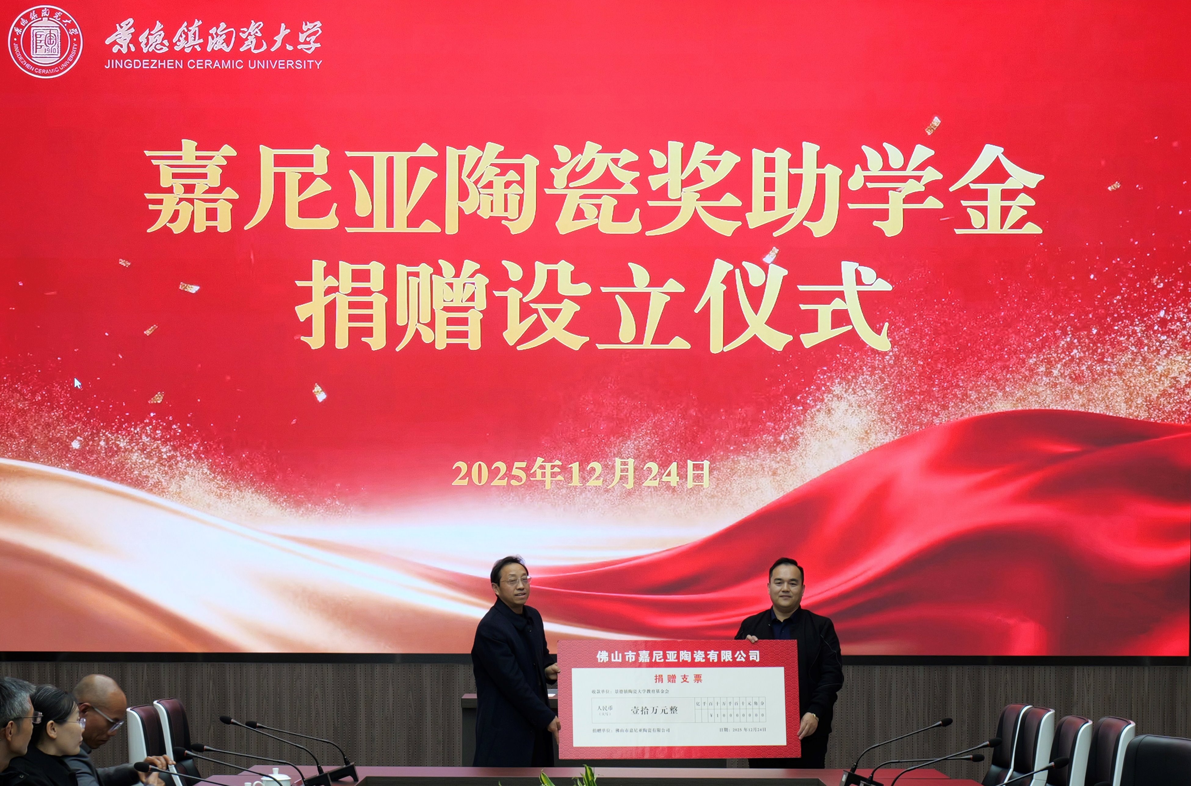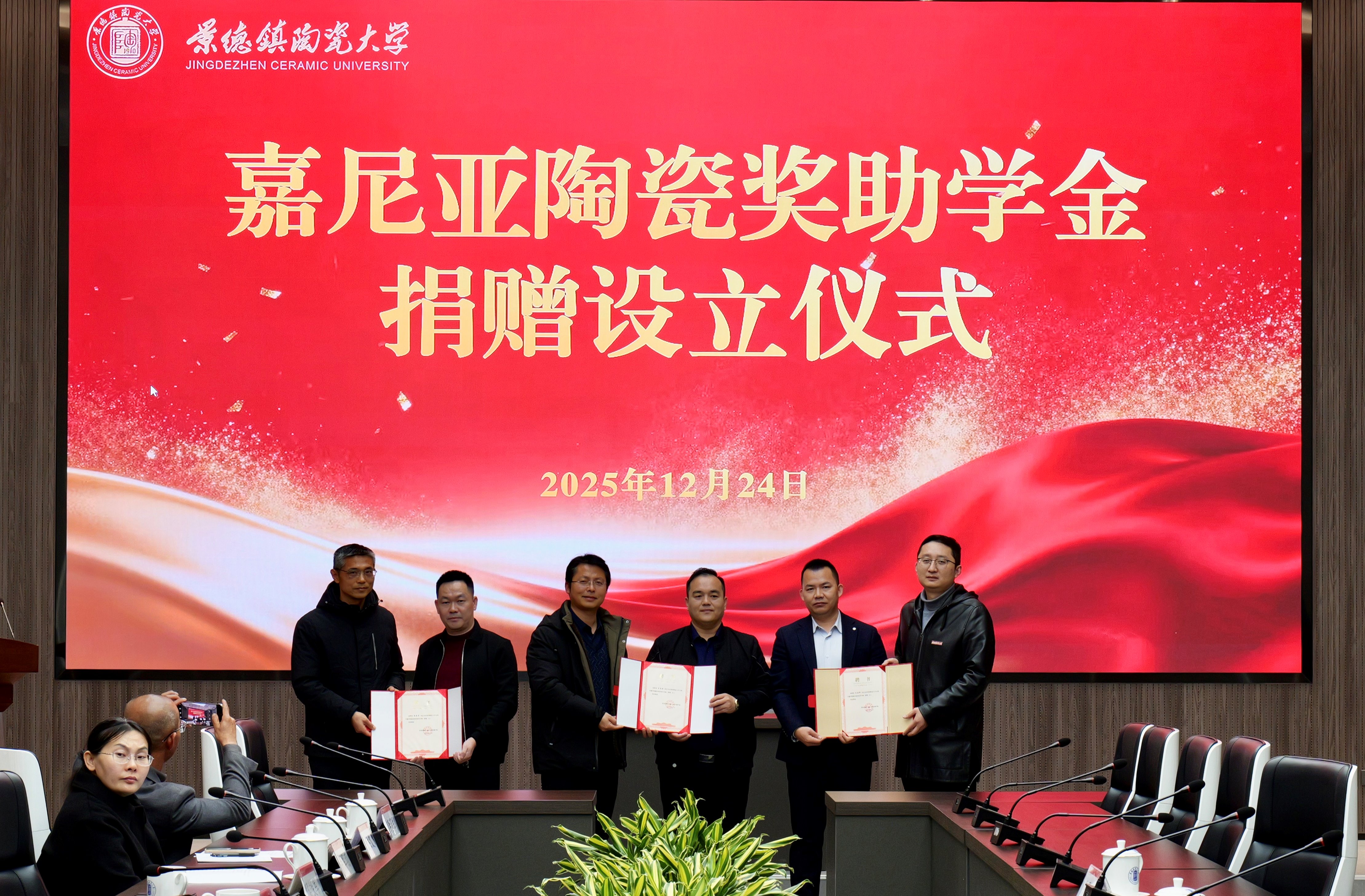 随后,景德镇陶瓷大学与佛山市嘉尼亚陶瓷有限公司签署捐赠协议,并为相关人员颁发捐赠荣誉证书及就业创业校外导师聘书。