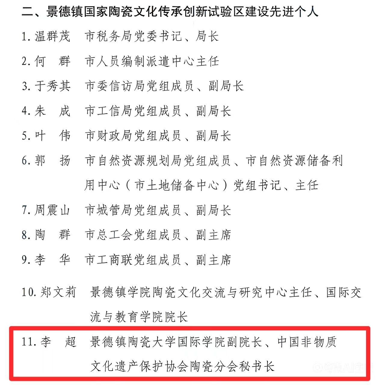 本网讯(发展规划处 郑君洁)近日,中共景德镇市委、景德镇市人民政府联合印发《关于表彰景德镇国家陶瓷文化传承创新试验区建设先进集体和先进个人的决定》(景字〔2025〕50号),对景德镇国家陶瓷文化传承创新试验区建设先进集体和先进个人予以表彰。我校美术学院荣获景德镇国家陶瓷文化传承创新试验区建设先进集体,国际学院副院长、中国非物质文化遗产保护协会陶瓷分会秘书长李超获评先进个人。