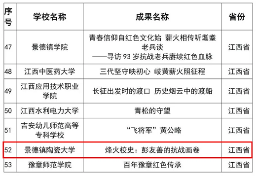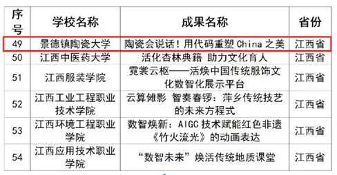 本网讯(党委宣传部)近日,教育部公布了2025年高校“礼敬中华优秀传统文化”宣传教育活动结果。本次江西省高校共入选作品19件,我校选送的3件作品均入选,获奖总数位列全国第一(并列)。其中,《陶瓷会说话!用代码重塑China之美》入选“数智未来”焕活传统文化案例优秀作品,《烽火校史:彭友善的抗战画卷》入选“烽火记忆”高校红色故事优秀作品,《魅力非遗青春创享非遗公开课“教授带您读懂活着的遗产”》入选“魅力非遗”原创优秀作品。