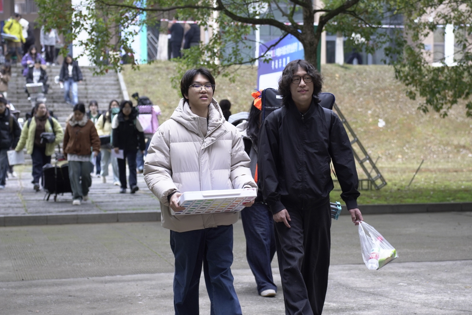 考生们背着画具步履从容