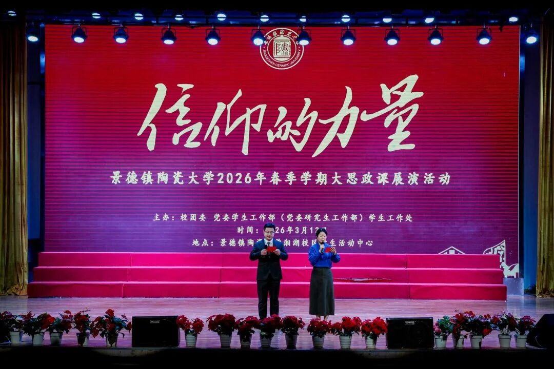 在全体师生合唱《景德镇陶瓷大学校歌》中,“信仰的力量”景德镇陶瓷大学2026年春季学期大思政课展演活动落下帷幕。