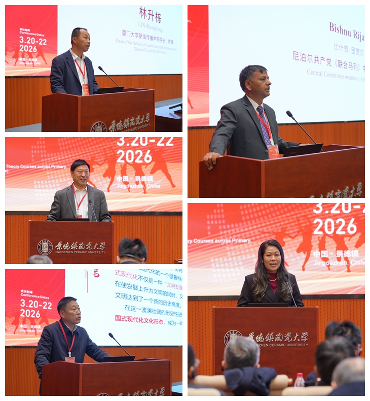 本网讯(文/李春荷 胡梦婷 刘颖 图/严一涵 邹艺涵)3月21日,“人类命运共同体”国际学术研讨会在景德镇陶瓷大学湘湖校区召开。江西省社会科学院党组书记、教授、博士生导师陈运平,景德镇陶瓷大学党委副书记王海波,俄罗斯科学院通讯院士谢尔盖·瓦西里耶维奇·梁赞采夫(Sergey Vasilyevich Ryazantsev),越共中央理论委员会委员、越南哲学协会常务副会长范文德(GS.TS Phạm Văn Đức),古巴哈瓦那大学马克思主义公共教育负责人叶连娜·迪亚兹(Regla Yelenne Diaz Lazo),尼泊尔共产党(联合马列)中央委员会委员比什努·里贾尔(Bishnu Rijal)致开幕辞,景德镇陶瓷大学党委常委、纪委书记王金海主持开幕式。