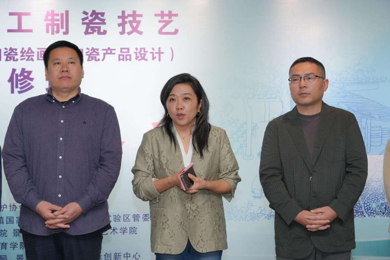 张婧婧在致辞中代表学校对学员的信任与支持表示感谢。她指出,景德镇手工制瓷技艺作为国家级非物质文化遗产,是中华文明活态传承的重要载体。景德镇陶瓷大学作为全国唯一以陶瓷命名的多科性大学,以教育文化反哺社会、扶持产业发展为己任。此次展览是学校教育反哺社会的开端,希望学员们将所学运用到生活、工作与教学中,争做非遗技艺的守护者、传播者和创新者,在未来创造出更多兼具传承与创新意义的非遗作品,推动陶瓷文化创造性转化、创新性发展。