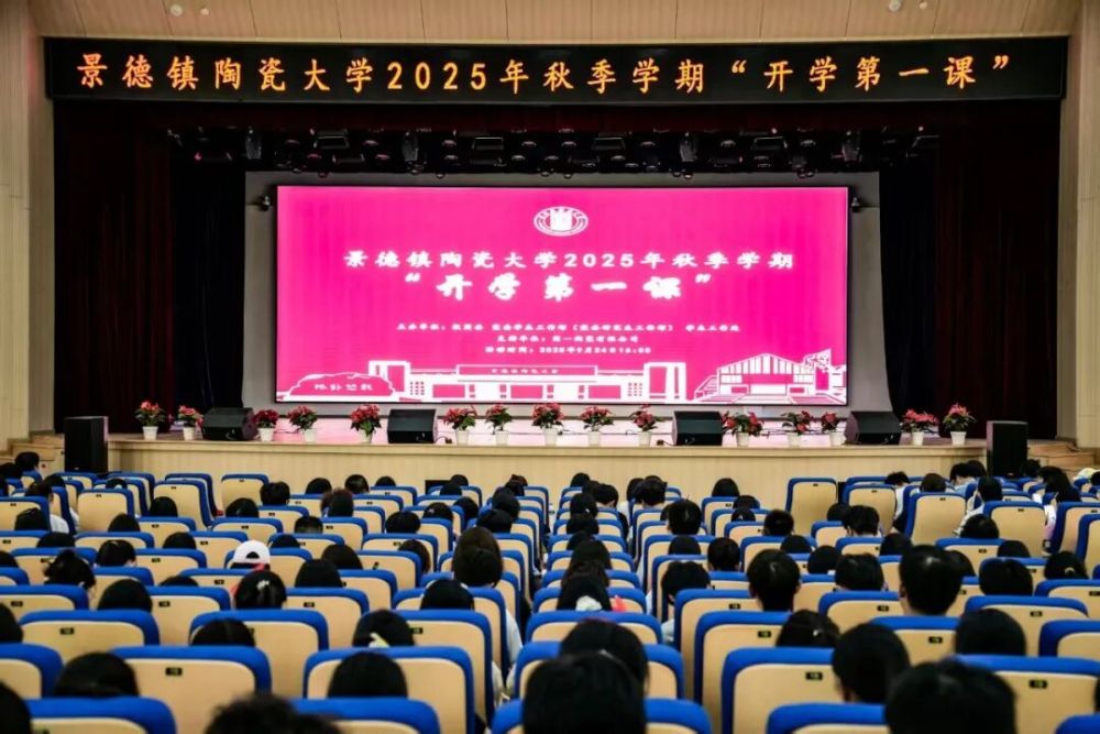 在《景德镇陶瓷大学校歌》的大合唱歌声中,景德镇陶瓷大学2025年秋季学期“开学第一课”落下帷幕。