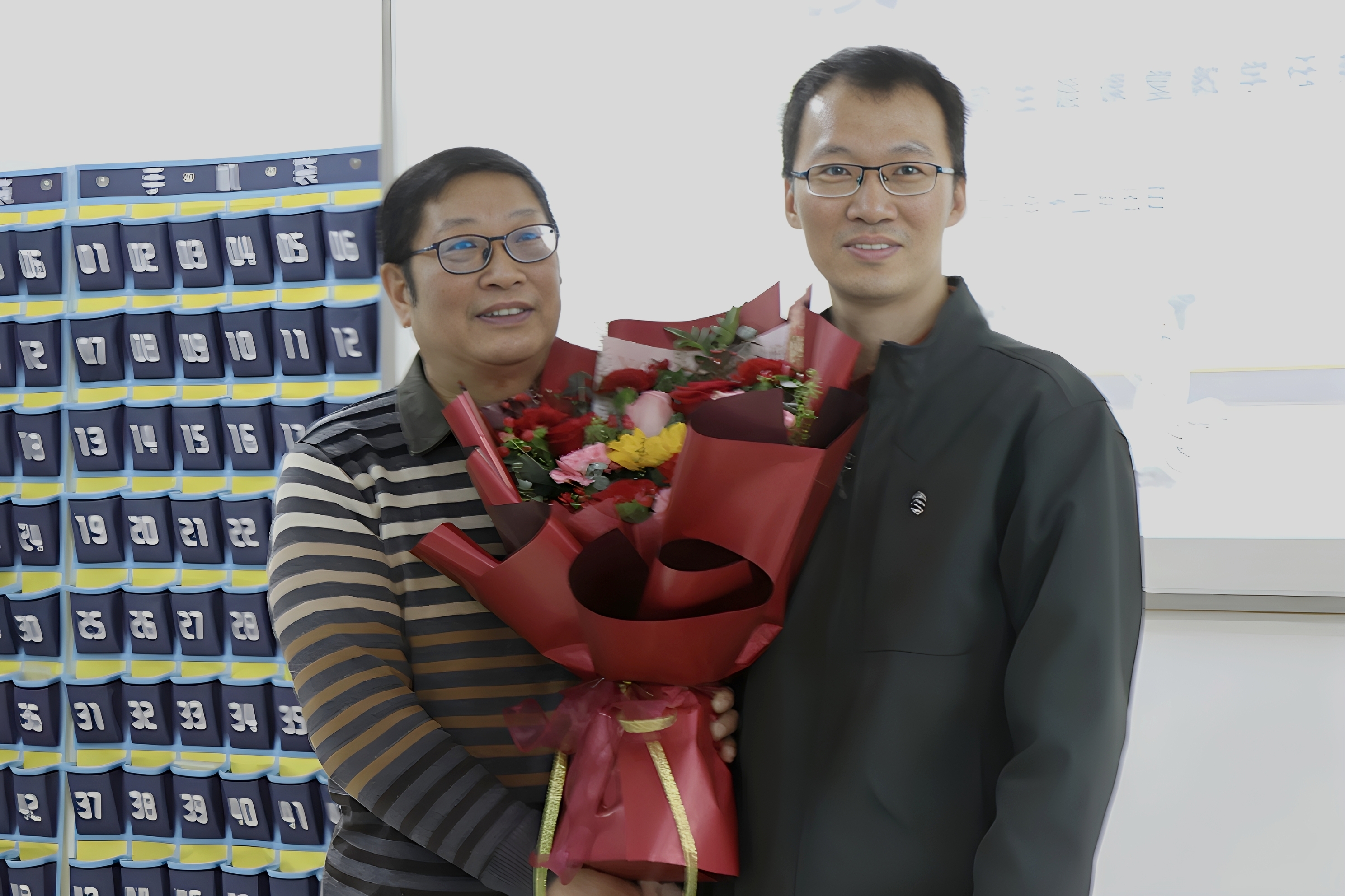 本网讯(信息工程学院 胡开华)12月5日上午,信息工程学院在尚学楼212教室为章义来老师举行杏坛四十载最后一课欢送仪式。学院领导班子成员、教师代表、章义来劳模创新工作室的成员、1998级校友赖俊祚及2025级计科专业1、2班的学生都齐聚教室,共同见证这一充满温情的时刻。