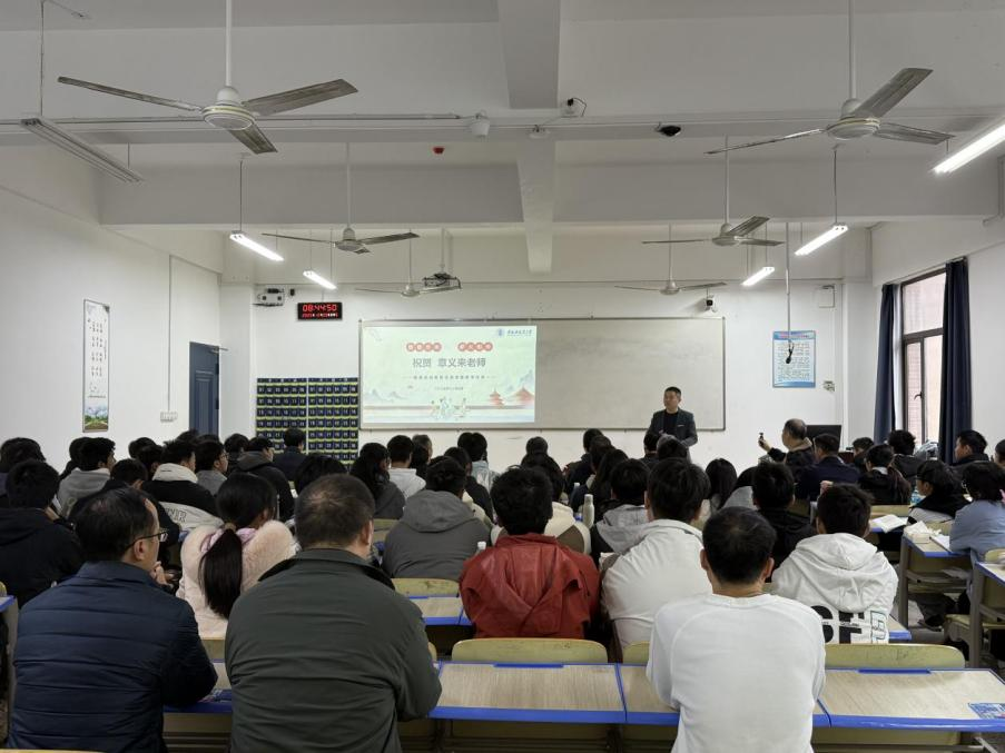 欢送仪式由信息工程学院党委书记李慧颖主持。他回顾了信息工程学院的发展历程,讲述了章义来老师作为首任计算机系主任从专业创办伊始到现在学院发展壮大过程中所做出的贡献,并代表学院党委对其表示由衷的感谢,希望章老师常回“家”看看。同时勉励2025级新同学在未来的学习生活中要继续学习章老师严谨、坚毅、求真的品质。